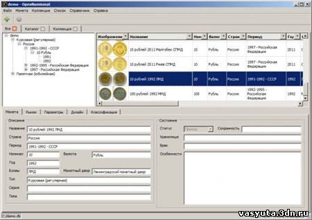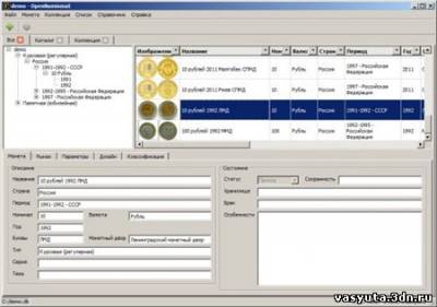 OpenNumismat - приложение для любителей монет и нумизматов. Позволяет делать и управлять электронными каталогами с подробным описанием и фотографиями монет. Возможности OpenNumismat: Более 60 настраиваемых полей для описания монеты: Характеристики Состояние монеты Детали выпуска Данные о покупке, продаже, проходе на аукционах Цены и каталожные номера До 7 фотографий монеты (вставка изображения из файла, буфера обмена, загрузка из Web по URL) Группировка, фильтры и сортировка для облегчения поиска монет в каталоге Дублирование монет для быстрого добавления сходной монеты Групповое редактиро