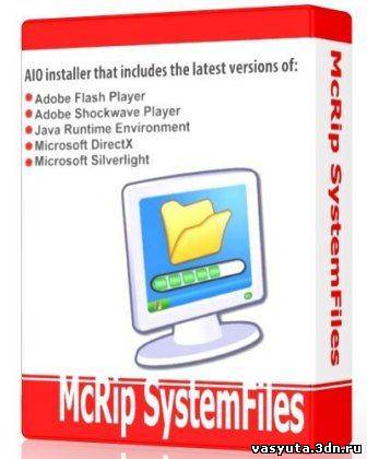 McRip SystemFiles - инсталлятор все-в-одном последних версий всех необходимых драйверов: - Adobe Flash Player - Adobe Shockwave Player - Java Runtime Environment - Microsoft DirectX - Microsoft Silverlight McRip SystemFiles is an AIO installer that includes the latest versions of: - Adobe Flash Player - Adobe Shockwave Player - Java Runtime Environment - Microsoft DirectX - Microsoft Silverlight Update: 2013 Platforms: Windows XP/Vista/7 x86/x64 Languages: English Licence: Freeware Size: 212 Mb Скачать McRipSystemFiles v.1.4.5 (2013/Eng) |